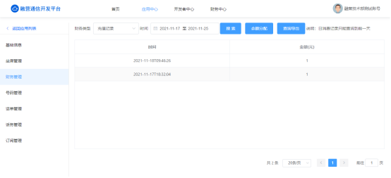 充值,应用财务管理余额分配,输入充值金额,选择充值类型对该应用进行充值;