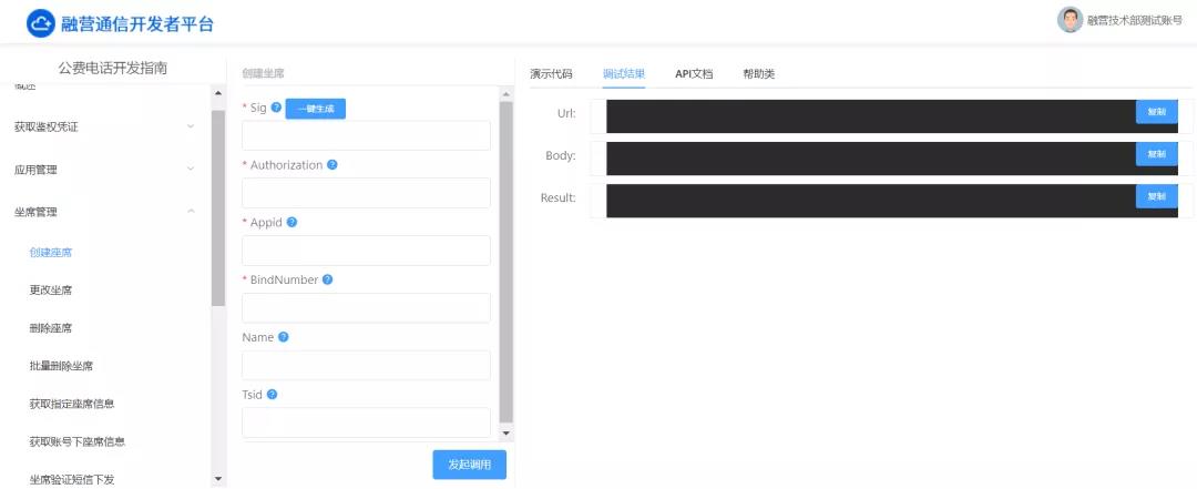 进入【开发者中心】模块,按需选择对应功能并填入参数,在线生成代码。操作过程中可随时进行调试,以便应用能成功对接。