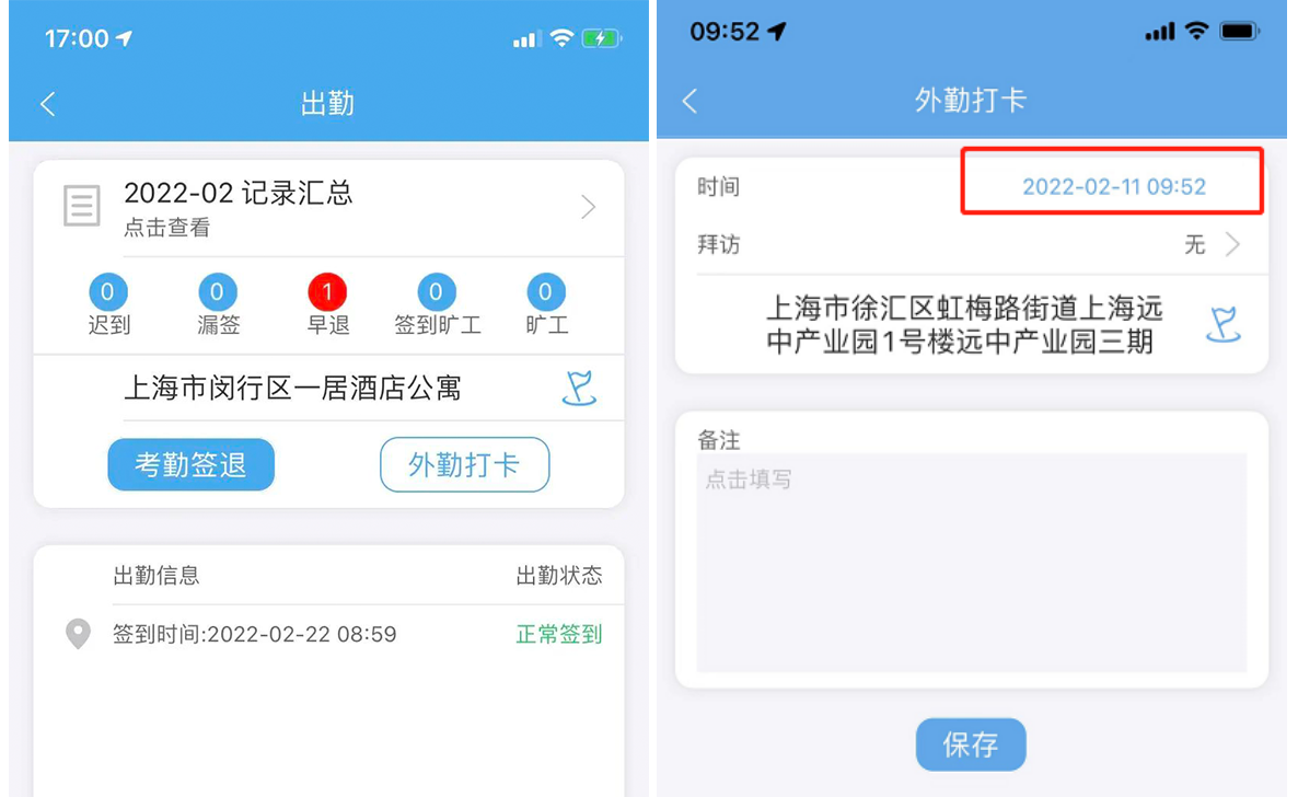 外勤打卡功能主要是用来记录那些需要因公离开公司的员工考勤,原版本的创业加BPM支持在外勤模式下自选时间进行打卡, 但出于对外勤数据的真实性考虑,此次更新取消了此功能的可选时间列表,改为实时记录打卡时间。